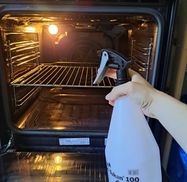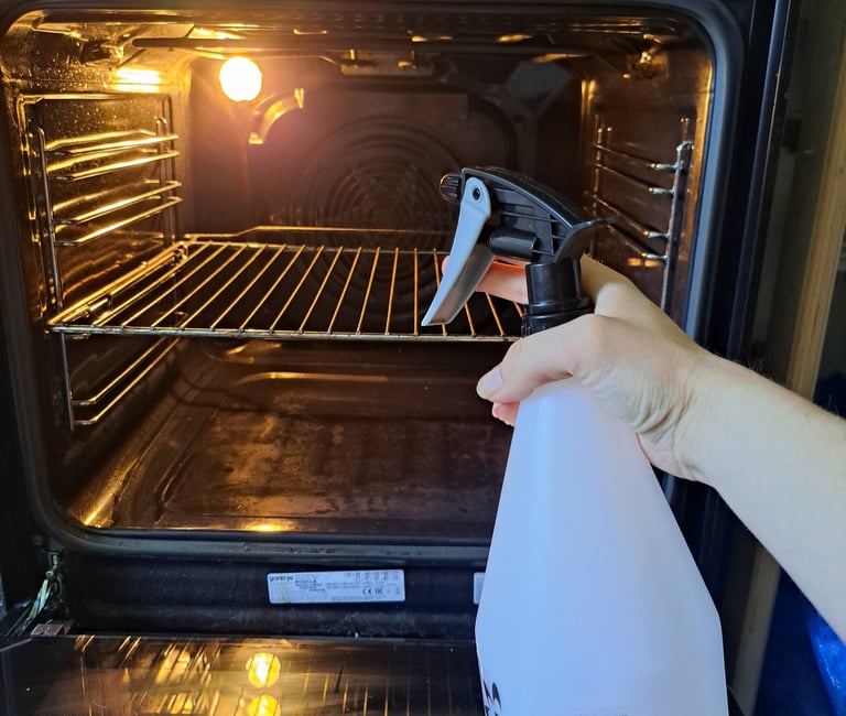 • Alternativ: Verwende eine Sprühflasche und besprühe die Ofenwände kräftig mit